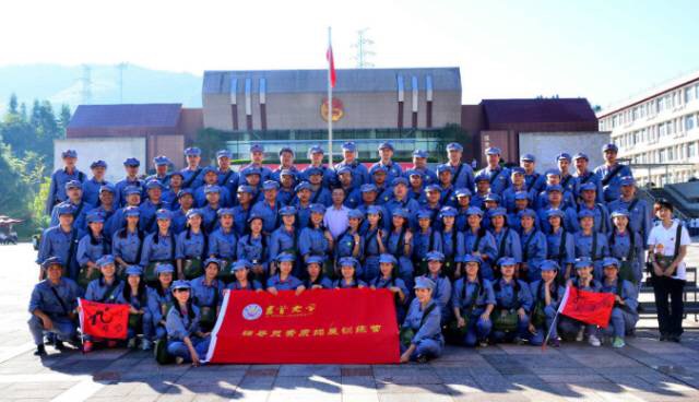 图为辅导员们穿上红军服的合影 |