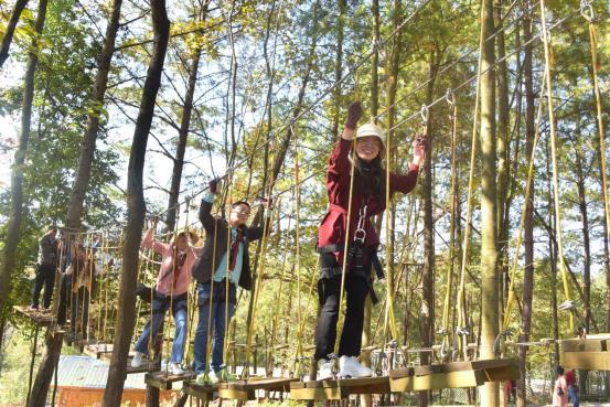 此次考察、联谊活动首先在陇木峒村户外拓展基地观看了民俗表演打溜子和摆手舞,之后体验了丛林穿越、七彩旱雪滑、极限滑草、悬崖秋千等。在活动中大家全情投入,群策群力,互相帮助,充分发挥团队协作精神,共同完成了每一个项目。